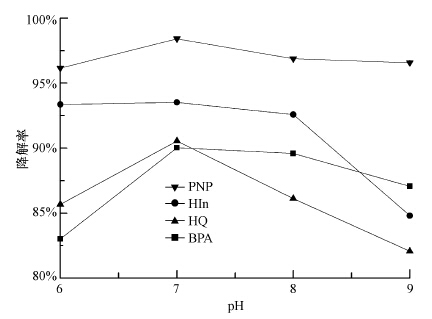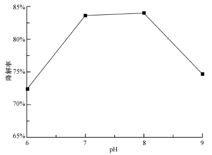 圖 6 溶液pH對(duì)降解率的影響