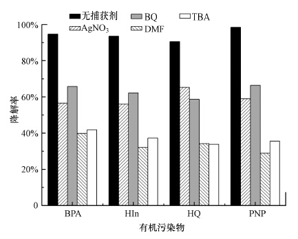 圖 8 捕獲劑(1 mmol · L-1)對(duì)有機(jī)污染物降解率的影響