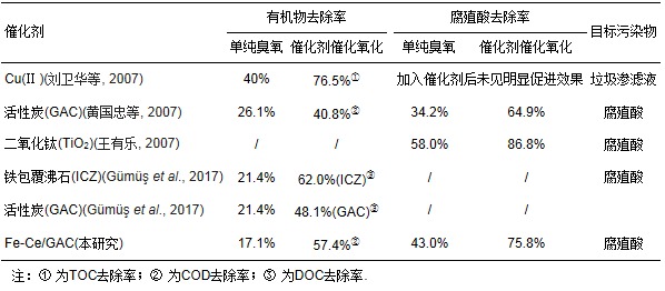 表 1 催化臭氧處理腐殖酸類廢水比較