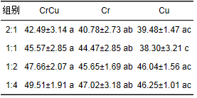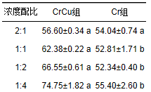 Cr(Ⅵ)/Cu(Ⅱ)復配濃度比為2:1、1:1、1:2、1:4