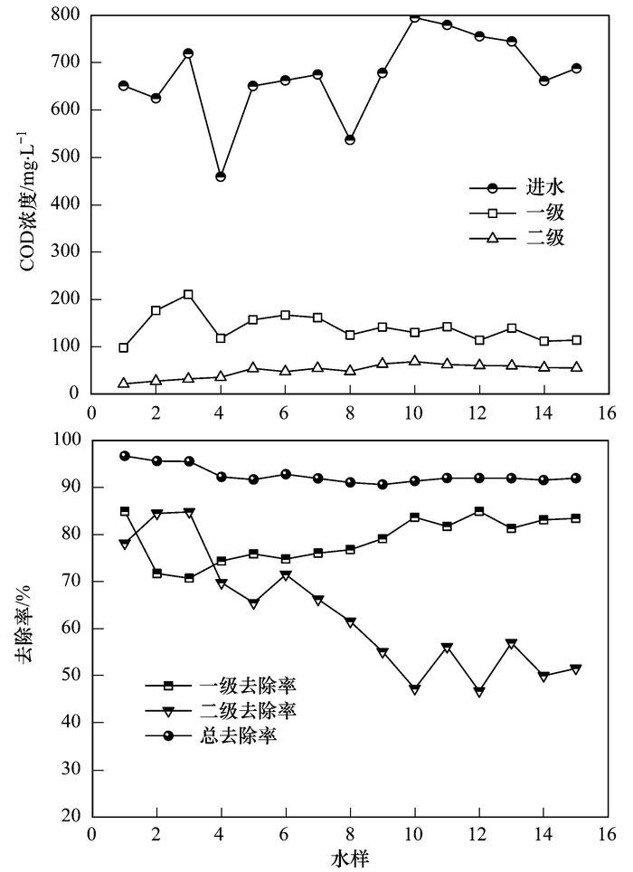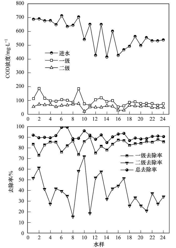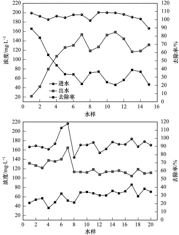 圖 2 水力負荷為11 cm·d-1時COD的去除情況