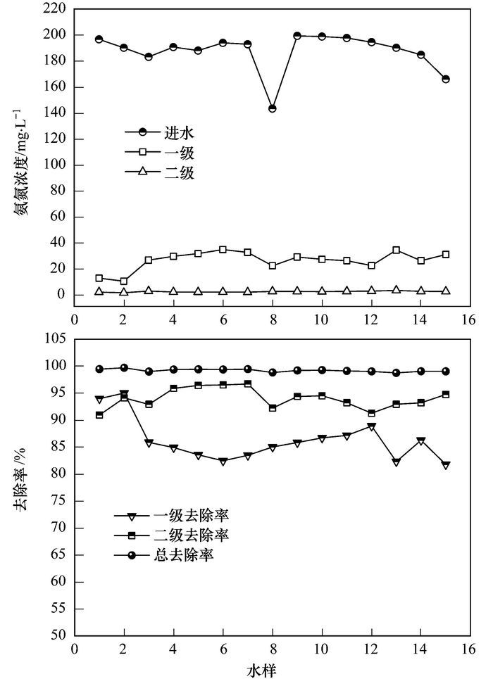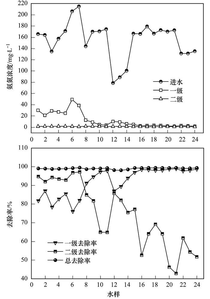 圖 5 水力負荷為22 cm·d-1時氨氮的去除情況
