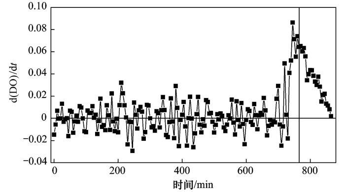 圖 6 SBR反應(yīng)器典型周期內(nèi)DO隨時(shí)間變化的一階導(dǎo)數(shù)