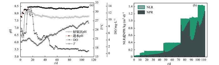 亞硝化的成功啟動總共經歷了111 d的時間, NPR達到了1.27 kg·(m3·d)-1, NAR也穩定在98%, 出水NO3--N濃度小于10 mg·L-1.