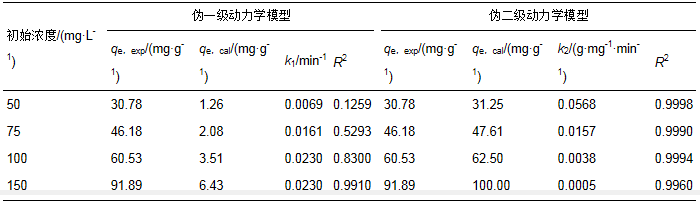 對于GEC對CR的吸附過程,本研究采用偽一級動力學方程(2)和偽二級動力學方程(3)(Li et al.,2013)進行擬合分析.