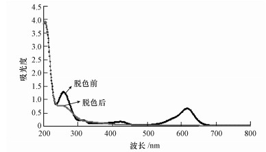 圖 5孔雀石綠脫色前后的全波長掃描圖譜