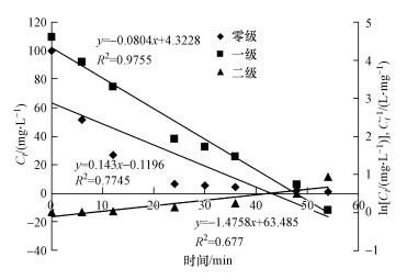 Das等(2010)的報道中指出, 微生物對染料的脫色動力學可以用零級(式(1))、一級(式(2))和二級模型(式(3))進行模擬.