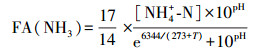 AOB和NOB對環境酸堿度較為敏感, 進水pH是影響短程硝化效能的一個重要決定因素.這種影響主要體現在兩個方面:①微生物需要在適宜的pH環境下進行新陳代謝, pH過高或過低都會影響細胞膜的通透性及表面帶電性進而影響生長繁殖, 已報道的不同硝化菌在不同反應體系的適宜pH范圍有所差異(Peng and Zhu, 2006;Park et al., 2007;Jiménez et al., 2011), 但基本上可以認為混合體系中AOB和NOB的最適pH分別在8和7附近, 該特性為控制這兩類菌的優勢增長提供了基礎;② pH值還會影響溶液中游離氨(Free Ammonia, FA)的濃度, 計算公式(Ge et al., 2015)如下: