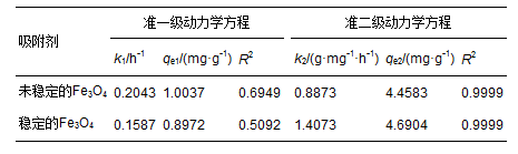 表 2 穩定Fe3O4和未穩定的Fe3O4吸附砷的動力學擬合參數
