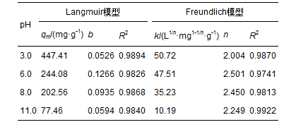表 3 不同pH條件下As(V)的吸附等溫線擬合參數