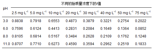 表 4 不同pH條件下各初始質量濃度的r值