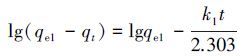 為了進一步研究Fe3O4納米粒子對As(V)的吸附動力學特征,采用吸附動力學模型方程對吸附過程進行模擬,包括Lagergren準一級動力學方程(式(2))和Ho準二級動力學方程(式(3))(Azizian et al.,2004; Ho et al.,2006).