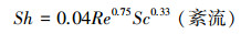 式中,D是溶質的擴散系數(m2·s-1);dh是水力直徑(m);Sh舍伍德數由公式(5)(6)獲得: