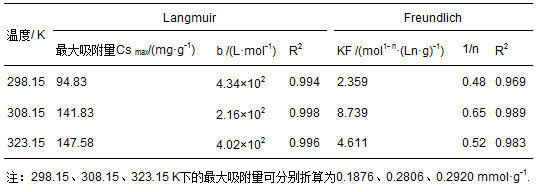 表 1 不同溫度下Langmuir和Freundlich模型的擬合參數