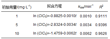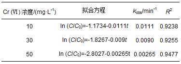 表 1 不同初始用量下去除Cr (Ⅵ) 反應(yīng)的表觀反應(yīng)速率常數(shù)