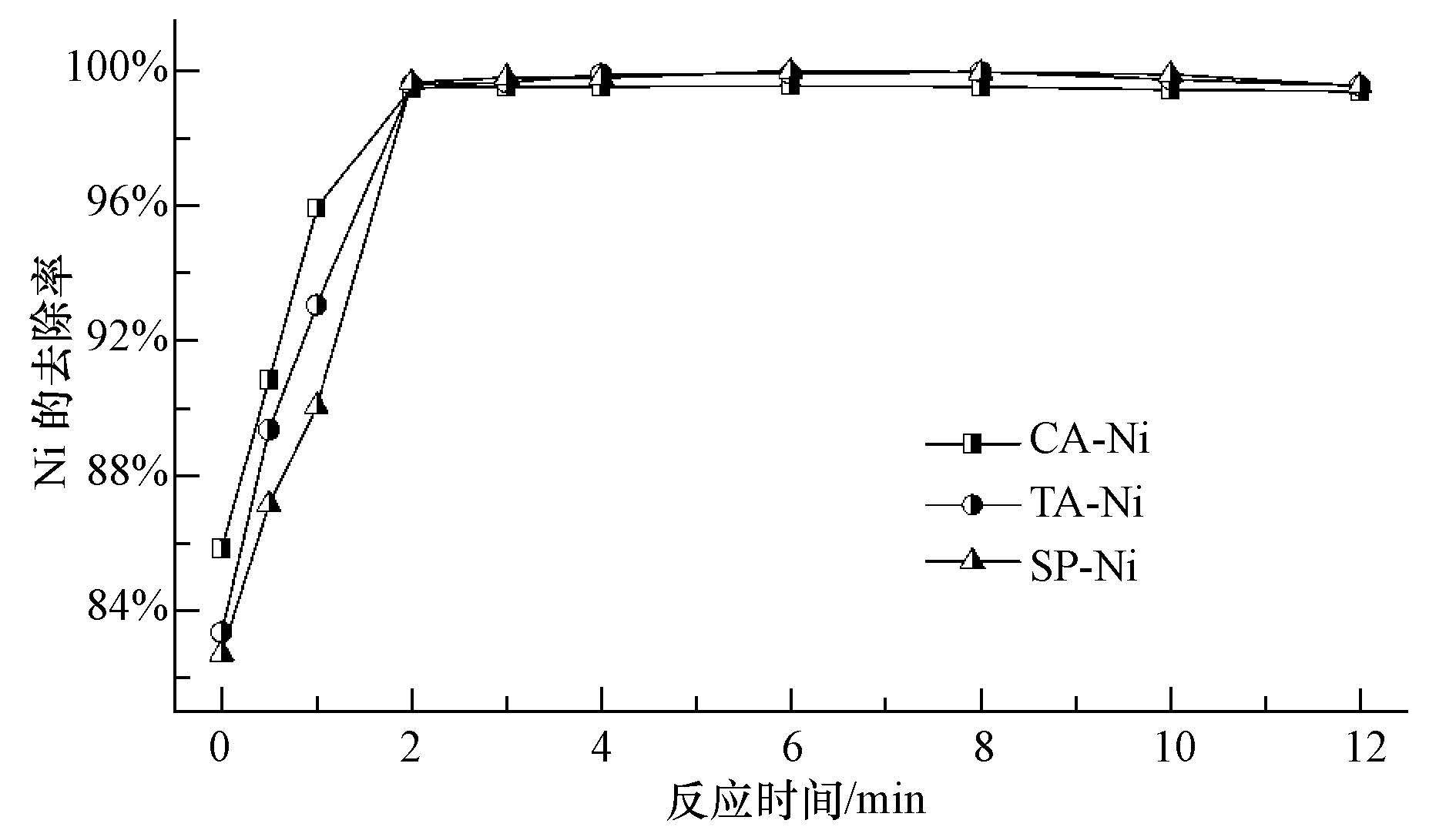 3.3 反應時間對Ni的去除影響