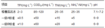 實驗所用生活污水取自武漢市湯遜湖污水處理廠格柵后出水,實驗水質及《城鎮污水處理廠污染物排放標準》(GB 18918—2002)一級標準各指標數值見表 2.