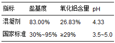 采用《工業級聚氯化鋁標準》(GB22627—2008)(2008)對混凝劑的主要理化性質進行評價,結果見表 3.