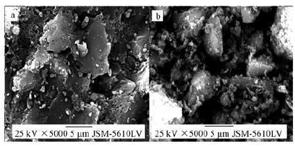 掃描電鏡(SEM,JSM-5610LV,JEOL Ltd,Japan)分析結果顯示(圖 7),粉煤灰顆粒表面較為光滑、平整,呈塊狀.由圖 7b可知,混凝劑表面附著有顆粒狀物質,表面呈聚合狀態,與圖 7a 相比,混凝具有更大的比表面積,從而增強了混凝劑對磷的吸附(Cakici et al.,2004).