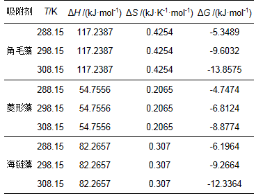表 4 3種海洋硅藻吸附Cd2+的熱力學參數(shù)