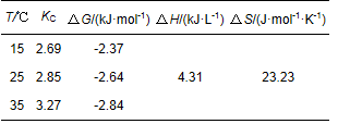 式中, KC為吸附平衡常數;Cs為達到吸附平衡時被吸附目標污染物的濃度(mg·L-1);Ce為達到吸附平衡時溶液中剩余目標污染物的濃度(mg·L-1);T為溶液中溫度(K);R為通用氣體常數(8.314 J·mol-1·K-1).