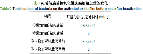 對未投加與投加磷酸鹽的兩個濾柱中微生物進行滅活.將O3從濾柱底部持續通入150 min, 實驗過程中臭氧濃度為1.90~3.92 mg·L-1, 對滅活前后活性氧化膜表面的細菌總數進行測定.對比滅活前后濾柱氨氮去除效果的差異, 并對活性氧化膜進行SEM和EDS表征分析, 初步探究磷酸鹽影響活性氧化膜氨氮去除活性的機制.