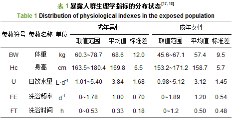 式中, cdw:水中污染物的濃度, mg·L-1; SA:可接觸的皮膚表面積, cm2; Kp:皮膚表面化學污染物的滲透常數, cm·h-1; FE:洗浴頻率, d-1; FT:洗浴時間, h; CF:單位轉化因子, 1 L·(1 000 cm3)-1; EF:暴露頻率, d·a-1; ED:暴露期, a; BW:平均體重, kg; AT:平均暴露時間, d, 具體參數詳見表 1.