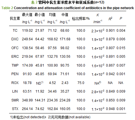 2.2 給水管網中抗生素的分布及衰減規律