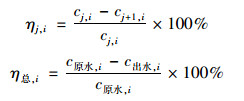為評價給水廠在各處理單元及整個工藝流程中對目標抗生素的去除效果, 抗生素去除率計算公式如下:
