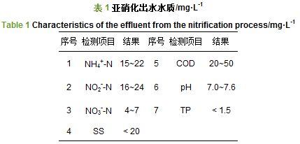 試驗采用的基質(zhì)為A/O除磷和亞硝化工藝處理后的實際生活污水, 具體水質(zhì)如表 1所示.