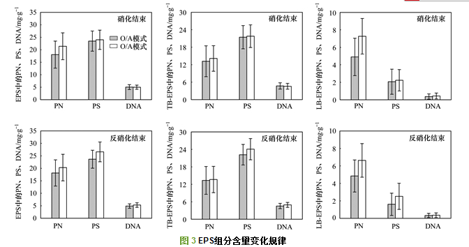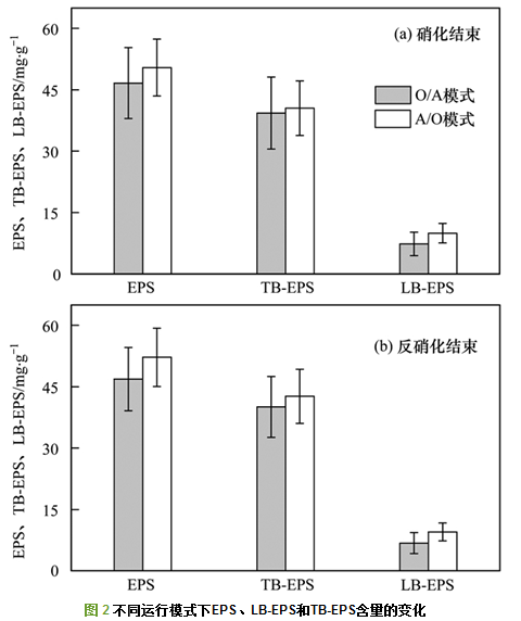 (2) 運行模式對TB-EPS及其組分(PN、PS和DNA)無影響; 而A/O中的LB-EPS含量及其組分(PN和PS)是O/A模式的1.4、1.38和1.56倍.