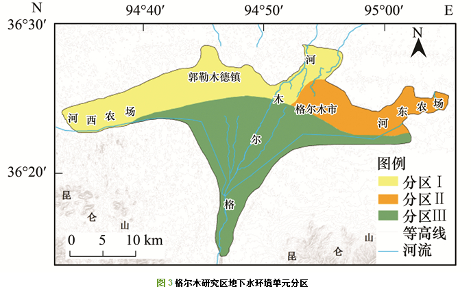 該區(qū)降雨稀少, 多年平均降雨量僅44 mm; 蒸發(fā)強(qiáng)烈, 年平均蒸發(fā)強(qiáng)度高達(dá)2 600 mm, 溫度較低, 多年平均氣溫僅為6℃, 屬于高原大陸性氣候.區(qū)內(nèi)發(fā)育的主要河流為格爾木河, 干流長378.5 km, 集水面積18 648 km2, 多年平均流量為25.51 m3 ·s-1, 是柴達(dá)木盆地的第二大河.受地形地貌、地層巖性、地質(zhì)構(gòu)造等因素控制, 格爾木山前平原地下水具有干旱內(nèi)陸盆地沖洪積扇地下水分布的一般規(guī)律, 在山前傾斜平原中上部為單一潛水, 地層巖性為砂礫卵石及砂層, 厚度>200 m, 在沖洪積扇溢出帶, 沉積地層顆粒從上游到下游逐漸由粗變細(xì), 地形漸緩, 地下水位埋深由深至淺, 于平原中前緣帶進(jìn)入山前平原區(qū).由于含水層厚度大, 是地下水的極富水地帶; 山前平原前緣, 地形平緩, 含水層以細(xì)顆粒為主, 形成了多層互層結(jié)構(gòu), 地下水變?yōu)槌袎夯蜃粤魉?地下水主要補(bǔ)給來源于格爾木河的入滲補(bǔ)給, 此外, 還包括溝谷洪流入滲、水庫滲漏以及灌溉回歸水; 地下水主要由南向北徑流, 泉集河、蒸發(fā)、側(cè)向流出及人工開采是地下水的主要排泄方式, 區(qū)內(nèi)地表水和地下水互相轉(zhuǎn)化頻繁.