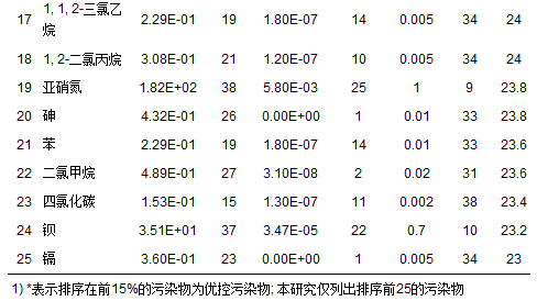 基于風(fēng)險評價的地下水中優(yōu)控污染物篩選體系是結(jié)合Multi-Cell模型和推流原理, 建立地表污染物垂向穿過包氣帶進(jìn)入地下水的一維模型, 通過地表污染源量化計算、包氣帶分區(qū)概化, 計算地表污染物進(jìn)入地下水中的量, 并與污染物毒性疊加實現(xiàn)污染物排序.該體系綜合考慮了水文地質(zhì)條件、地表污染源特征、污染物毒性等因素, 科學(xué)性較高.基于污染評價的地下水中優(yōu)控污染物篩選體系則是直接從地下水角度出發(fā), 在水質(zhì)監(jiān)測數(shù)據(jù)的基礎(chǔ)上運(yùn)用地下水污染評價方法, 通過指標(biāo)污染程度疊加得到綜合污染指數(shù)實現(xiàn)污染物排序.該體系在污染評價中隱含了水文地質(zhì)條件、污染物毒性等因素, 同樣具有一定的科學(xué)性.