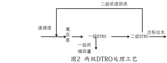 (2)典型工藝:兩級 DTRO 反滲透處理工藝。