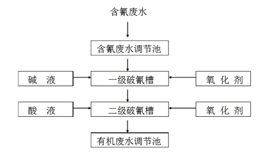 氫氰根離子用一般的絮凝沉淀法不能將其直接去除,必須通過氧化作用,打破其化學鍵的結構,最終使其降解,形成CO2和N2得已去除。