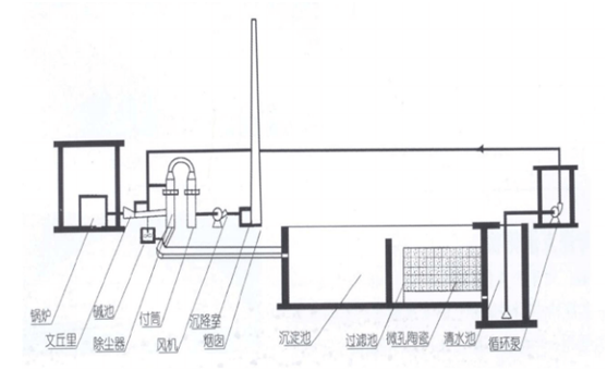經(jīng)平流沉淀池處理后的出水懸浮物仍然高達(dá)1000mg/l左右,粉煤灰顆粒粒徑較小,一般都在100um以下,這部分粉煤灰最難處理,靠自然沉降,沉降速度慢,沉降效果較差,故而在沉淀池后面增加微孔陶瓷過(guò)濾池。