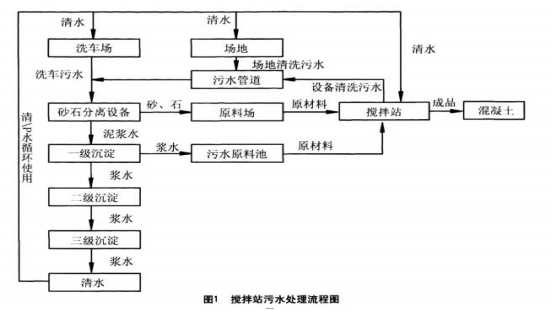 從流程圖上可以看出,無論是洗車場產(chǎn)生的廢水,還是攪拌站清洗或者場地清洗產(chǎn)生的廢水,經(jīng)過該污水處理系統(tǒng)以后一部分作為原材料送到攪拌站生產(chǎn)成混凝土,一部分經(jīng)過多級沉淀后供洗車場、作業(yè)場地以及攪拌站清洗使用,沒有向外排放污水,達(dá)到零污水排放的環(huán)保設(shè)計(jì)理念。