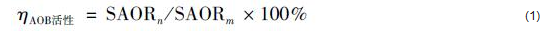 式中, ηAOB活性為AOB活性, %; SAORn為第n周期曝氣結束時SAOR(以N/VSS計), g ·(g ·d)-1; SAORm為整個試驗階段SAOR的平均值(以N/VSS計), g ·(g ·d)-1.