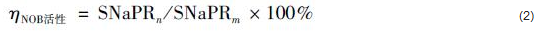 式中, ηNOB活性為NOB活性, %; SNaPRn為第n周期曝氣結束時SNaPR(以N/VSS計), g ·(g ·d)-1; SNaPRm為整個試驗階段SNaPR的平均值(以N/VSS計), g ·(g ·d)-1.