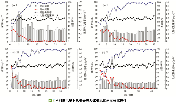 2 結果與討論 2.1 曝氣量對氨氮去除及比氨氧化速率恢復變化特性