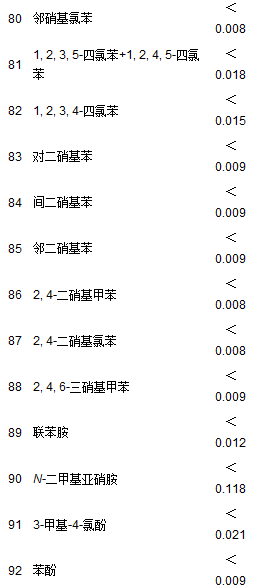 如表 2所示, 監測項目總共125種, 其中對-二甲苯與間-二甲苯以及1, 2, 3, 5-四氯苯與1, 2, 4, 5-四氯苯均無法色譜分離也無法通過碎片離子進行區分.