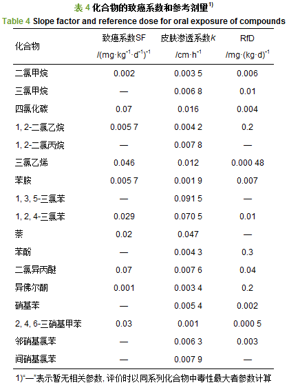 式中, SF為化學致癌物的致癌斜率系數[(mg·kg-1·d-1)-1], 它是指一個個體終生(70 a)暴露于某一致癌物后發生癌癥的概率的95%上限估計值, 此值越大, 則單位劑量致癌物的致癌概率越高, 故又稱為致癌強度系數(carcinogenic potency index); E為長期攝入量.