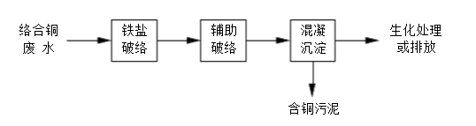 印制電路板行業廢水中銅有多種存在形式:離子態銅、絡合態銅或螯合態銅,應按不同方法分別進行去除。離子態銅經混凝沉淀去除。絡合態或螯合態銅經過破絡以后混凝沉淀去除。