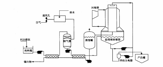 鹽濃縮工藝能夠將來自常規處理系統的脫硫廢水,通過蒸汽壓縮式降膜蒸發器,處理生成純凈的蒸餾水,用于回收到FGD系統作為工藝補充水。這個系統的副產物是氯化鈣溶液,它適合應用在防塵、穩定土壤、防冰控制以及其他與高速公路建設相關的領域。