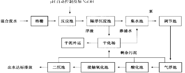 混合廢水的BOD/COD一般在 0 .2 8—0 .35之間 ,總水量約 560t/d ,實際設計水量取 60 0t/d。