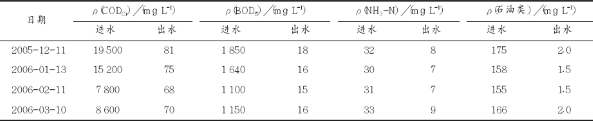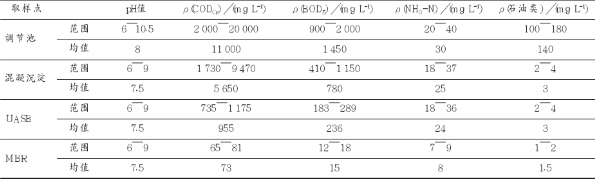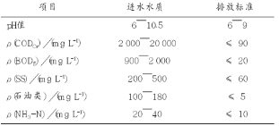廣州某包裝系統產品有限公司主要業務包括標簽類及扣件類產品,該公司生產廢水主要來源于紙板的印刷過程以及印刷機械設備的清潔,外排量為40 t/d,廢水含大量的水溶性油墨,石油類和CODCr的質量濃度分別達到180和20000mg/L,成分復雜,濃度高。進水水質指標詳見下圖。