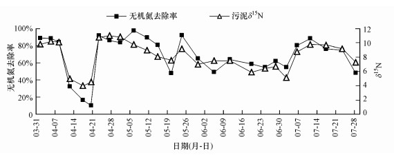 圖 3無機氮去除率與δ15N關(guān)系