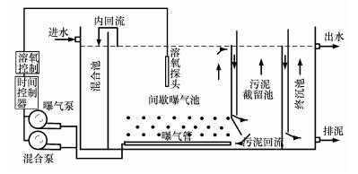 連續流間歇曝氣工藝在國內外均有研究,相對于傳統活性污泥工藝,間歇曝氣工藝可以減少反硝化過程中對碳源的需求,適用于低C/N污水的脫氮(Hao et al., 1996;Fulazzaky et al., 2015).Insel等(2006)研究認為,曝氣停曝的循環時間和其中曝氣時間的占比對整個反應脫氮的過程有重要影響.國內對間歇曝氣工藝的研究多集中在現有污水處理廠的提標改造及處理過程中的控制參數上,如張雯等(2013)研究了間歇曝氣和連續曝氣對完全混合反應器脫氮性能的影響,指出間歇曝氣時,由于厭氧階段有利于異養型兼性厭氧菌的代謝活動,故反硝化進行得較為徹底,對總氮的去除率可以維持在70%以上.金春姬等(2003)對低C/N污水進行間歇曝氣工藝處理,考察了間歇曝氣周期對污水脫氮的影響,認為曝氣時間應根據進水氨氮負荷保持在0.5 h以上,攪拌缺氧的時間應該控制在1 h左右.喬海兵等(2006)通過對連續流間歇曝氣氧化溝的研究,指出循環周期越小,好氧和缺氧交替頻率越高,系統中的DO水平相對較高,有利于硝化,同時也有利于消除停氣期的短流影響;隨著曝氣時間占比的降低,停氣時間的增加,進水中的有機物進入溝內,作為反硝化的外加碳源,從而使反硝化速率加快.然而,對于分散式的間歇式曝氣活性污泥工藝應用于分散式污水處理還鮮有報道.由于處理成本及水量水質條件的制約,研究處理量小、能耗較低的間歇曝氣反應器的處理效能具有重要的現實意義.
