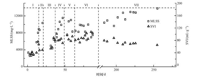 3.2 生物反應器內污泥濃度(MLSS)及污泥體積指數(SVI)變化情況