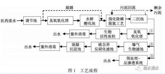 針對深圳國家生物醫藥產業園區內醫藥企業廢水特點進行提標處理,設計了3種深度處理方案對其進行中試研究比選。結果表明,以強化除磷脫氮生化處理系統為核心,臭氧氧化-生物活性炭為深度處理的組合工藝對該類廢水具有較好的處理效果,其中COD、氨氮、總氮、總磷的平均出水濃度為8mg/L、0.1mg/L、3.8mg/L、0.2mg/L,可穩定達到《地表水環境質量標準》(GB3838-2002)IV類水標準(其中總氮≤5mg/L)。